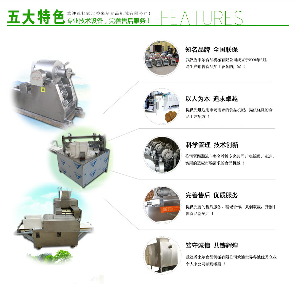 武漢香來爾食品機械有限公司成立于2001年2月,是生產(chǎn)銷售休閑食品加工設備的廠家。公司緊跟市場潮流與華工、華農多名共同開發(fā)新穎、實用的適應市場需求的食品機械,自有車、刨、鉆、銑、剪板、折彎等先l進機床100多臺 套。7年誠信通會員,產(chǎn)品出口拉美、非洲、東南亞、歐洲等很多國家和地區(qū),國內很多食品企業(yè)都是我們的合作伙伴。目前公司專門設立一個的售后 服務班子,在公司逐步發(fā)展強大的過程中,一直堅持售后服務的同步發(fā)展,精良的食品設...